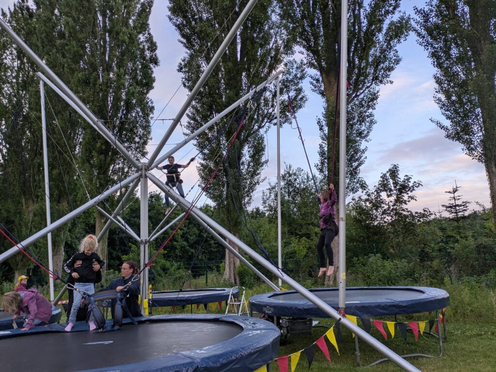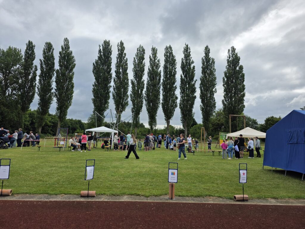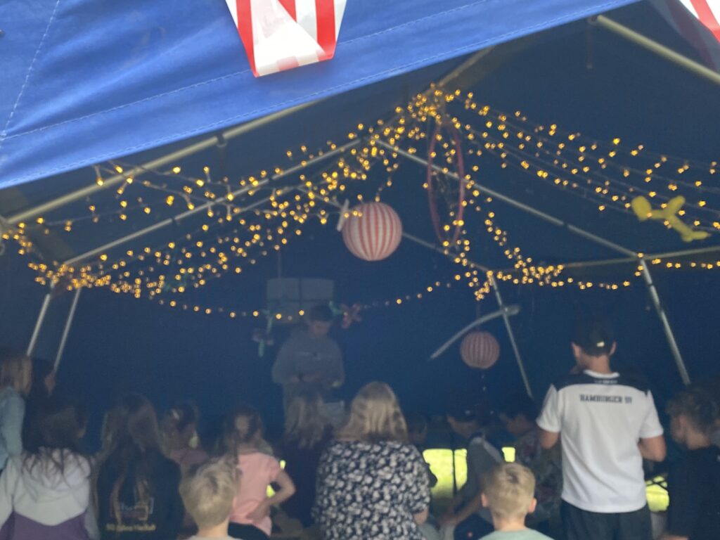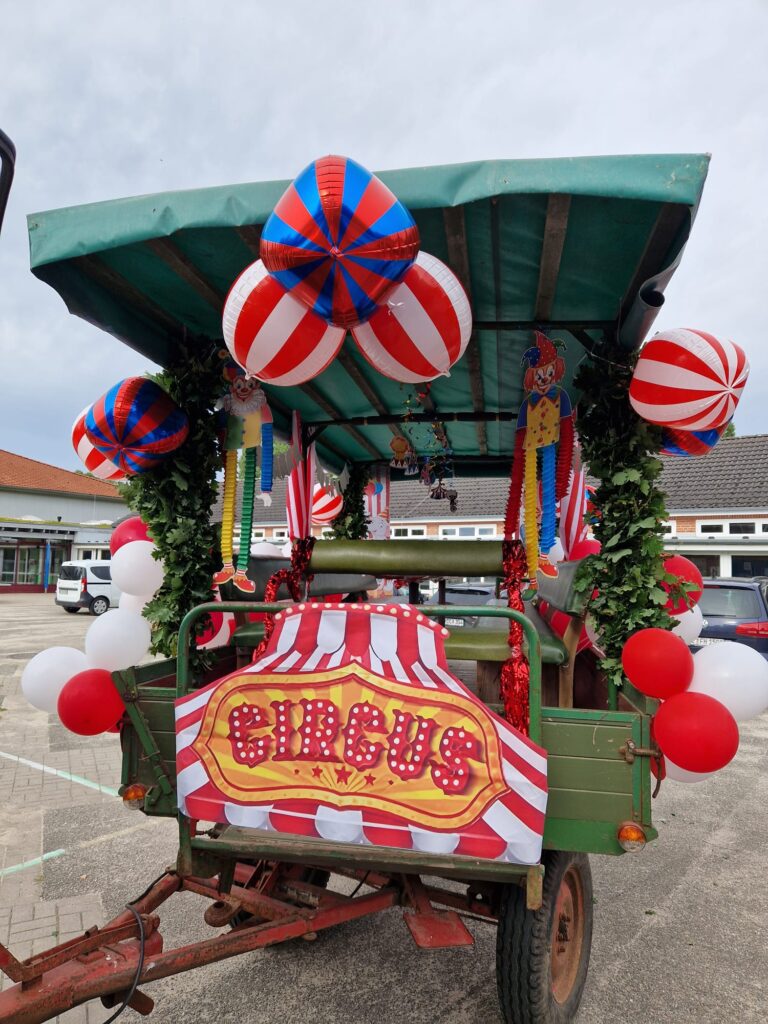 Spiel für Klein und Groß ins Festzelt. Für noch mehr Spaß sorgten die zahlreichen Attraktionen: Riesentrampoline, eine große Hüpfburg, das Spielmobil vom Landessportverband, ein Zauberer, der die Kinder mit magischen Tricks begeisterte, sowie eine spannende QR-Code-Rallye, bei der die kleinen und großen Detektive versteckte Hinweise suchten und so das Zirkusmotto erlebten.